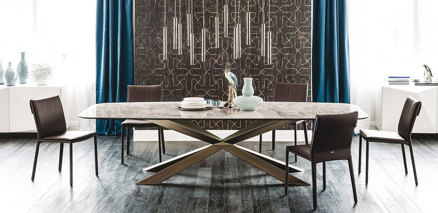 Хотим сегодня представить вам коллекцию дизайнерских обеденных столов фабрики Cattelan Italia. В каталоге фабрики можно найти как раздвижные, так и фиксированные обеденные столы. Коллекция собрана из самых креативных, неординарных, но при этом практичных столов. Для каждого стола доступно множество вариантов отделок столешниц из стекла, керамики или натурального дерева. Итальянские столы Cattelan Italia легко узнаваемы благодаря оригинальному дизайну с использованием строгих линий и геометрических форм, к примеру, в таких моделях, как Spyder, Sigma или Skorpio.